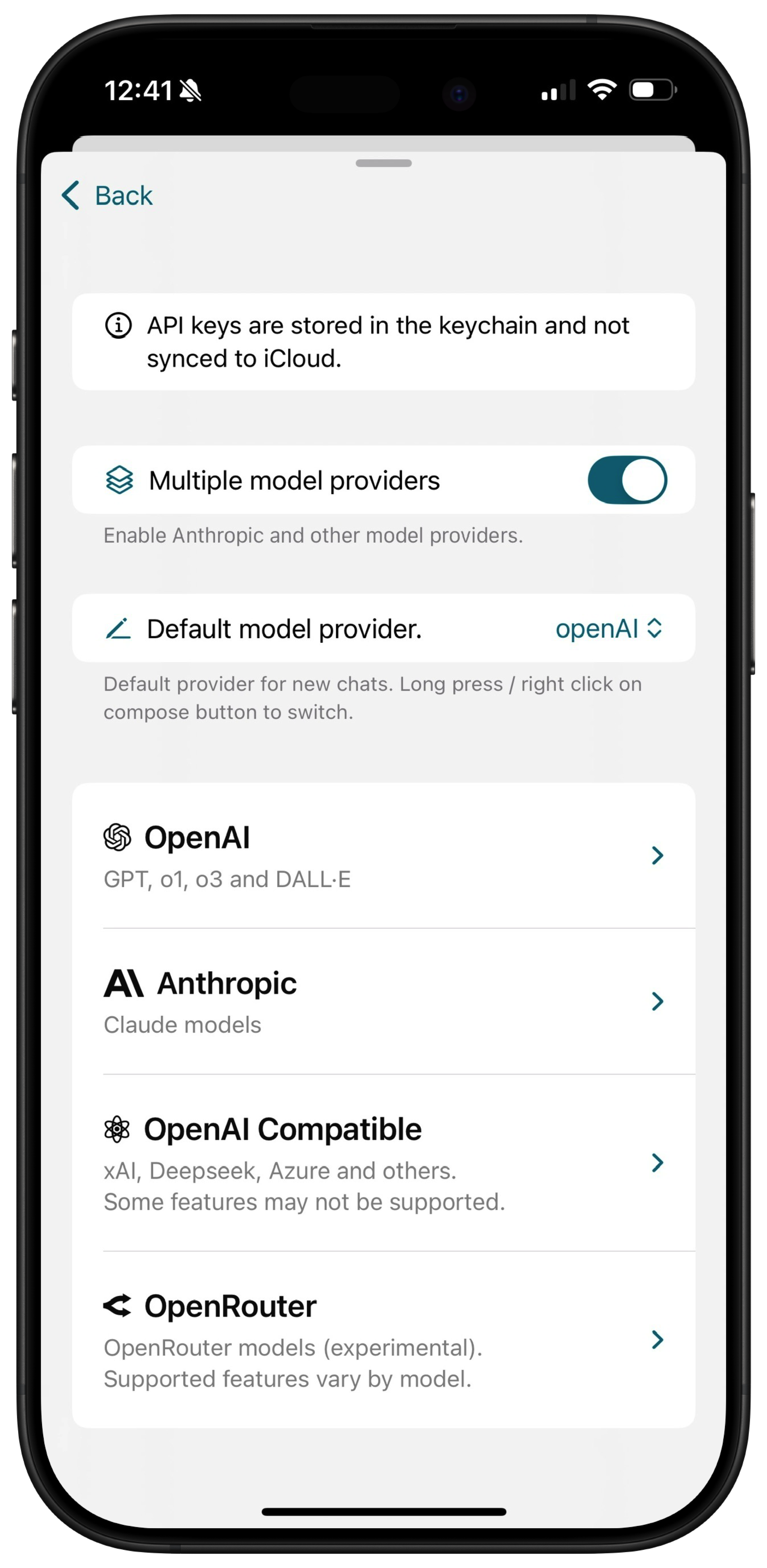easily switch between providers by long pressing (iOS) or right clicking (macOS) the compose button. The default provider is indicated by the logo on the button
