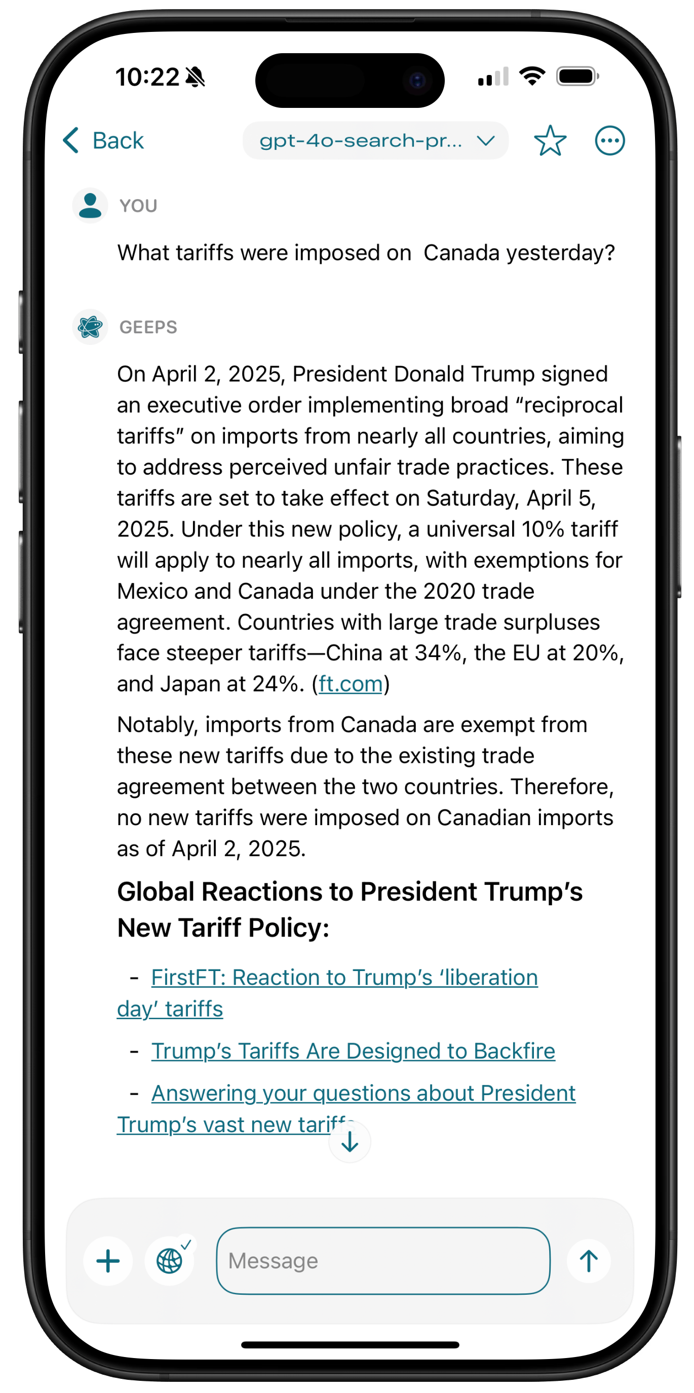 gpt-4o-search-preview and gpt-4o-mini-search-preview models, tapping/clicking the search button will toggle between the current model and gpt-4o-search-preview